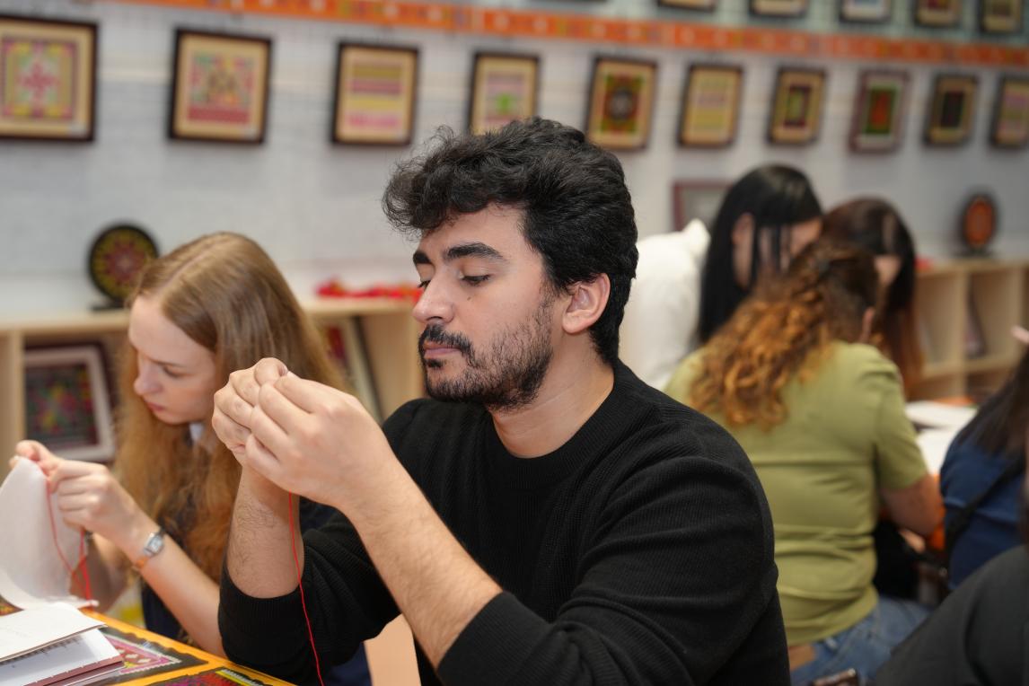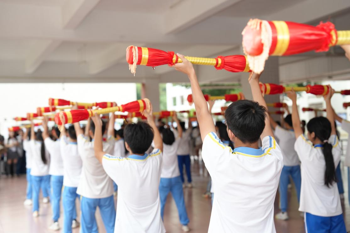 国际学生与乳源实验中学、韶关学院师生交流,体验瑶族文化,感受乡村振兴的“南粤力量”。国际学生在乳源实验中学与中学生共学长鼓舞、竹竿舞、瑶绣。
