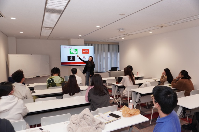 11月28日上午,访问团团长、汉语言文化系副主任刘轶文老师为东京学院师生带来了《社交媒体视角下的中国青年交际文化》主题讲座。讲座深入探讨了当代中国年轻人的社交媒体使用习惯、网络文化特征以及跨文化交际技巧。刘老师以生动的案例介绍了多种中国主流社交媒体应用的功能特点和应用场景,并特别分享了深圳本地生活常用的移动应用,包括交通出行、购物餐饮等常用应用,同时介绍了在学习中使用的教育学习类相关应用和经验,让同学们对在深圳的日常生活有了更直观的认识。