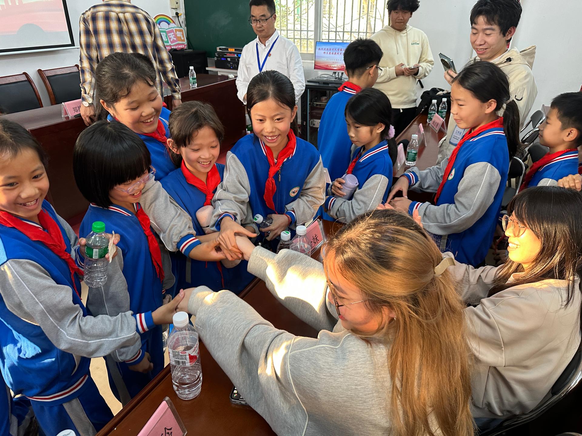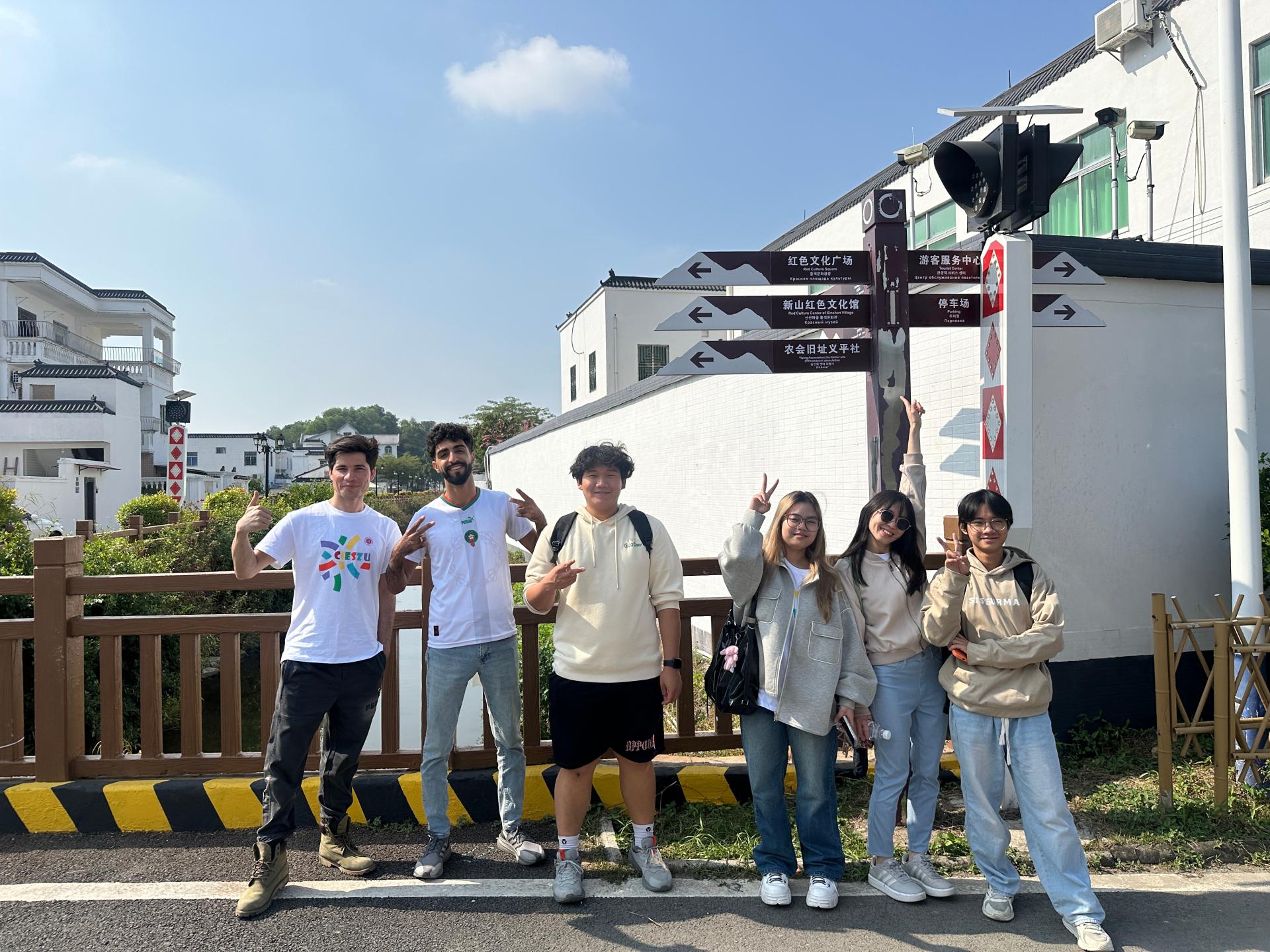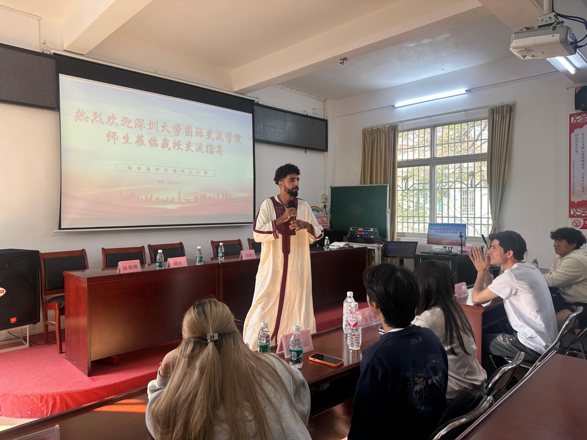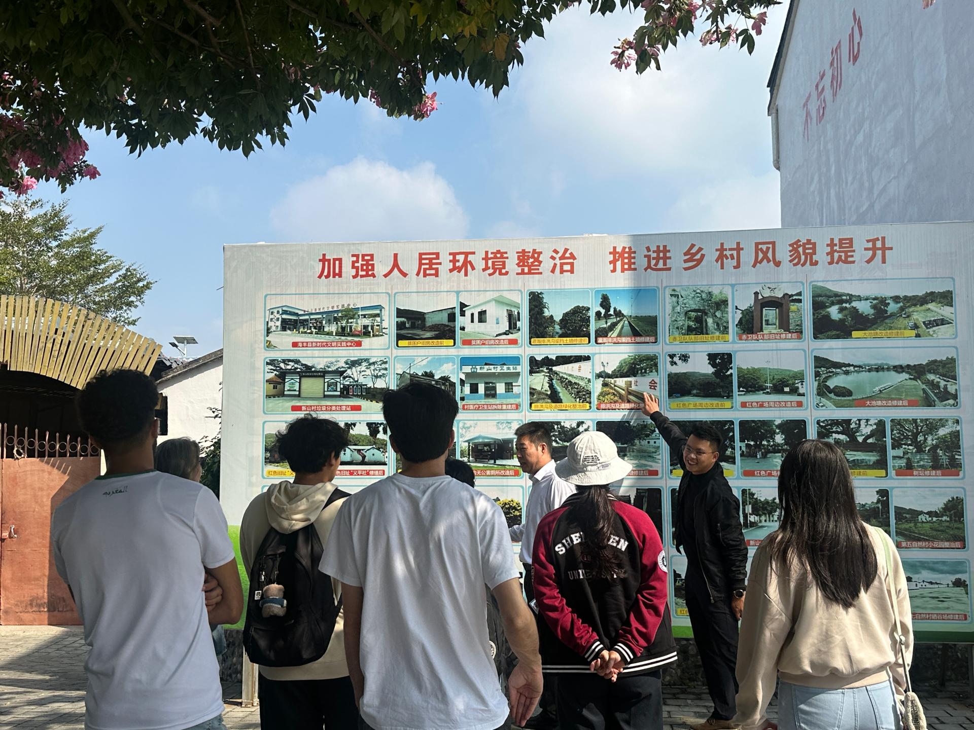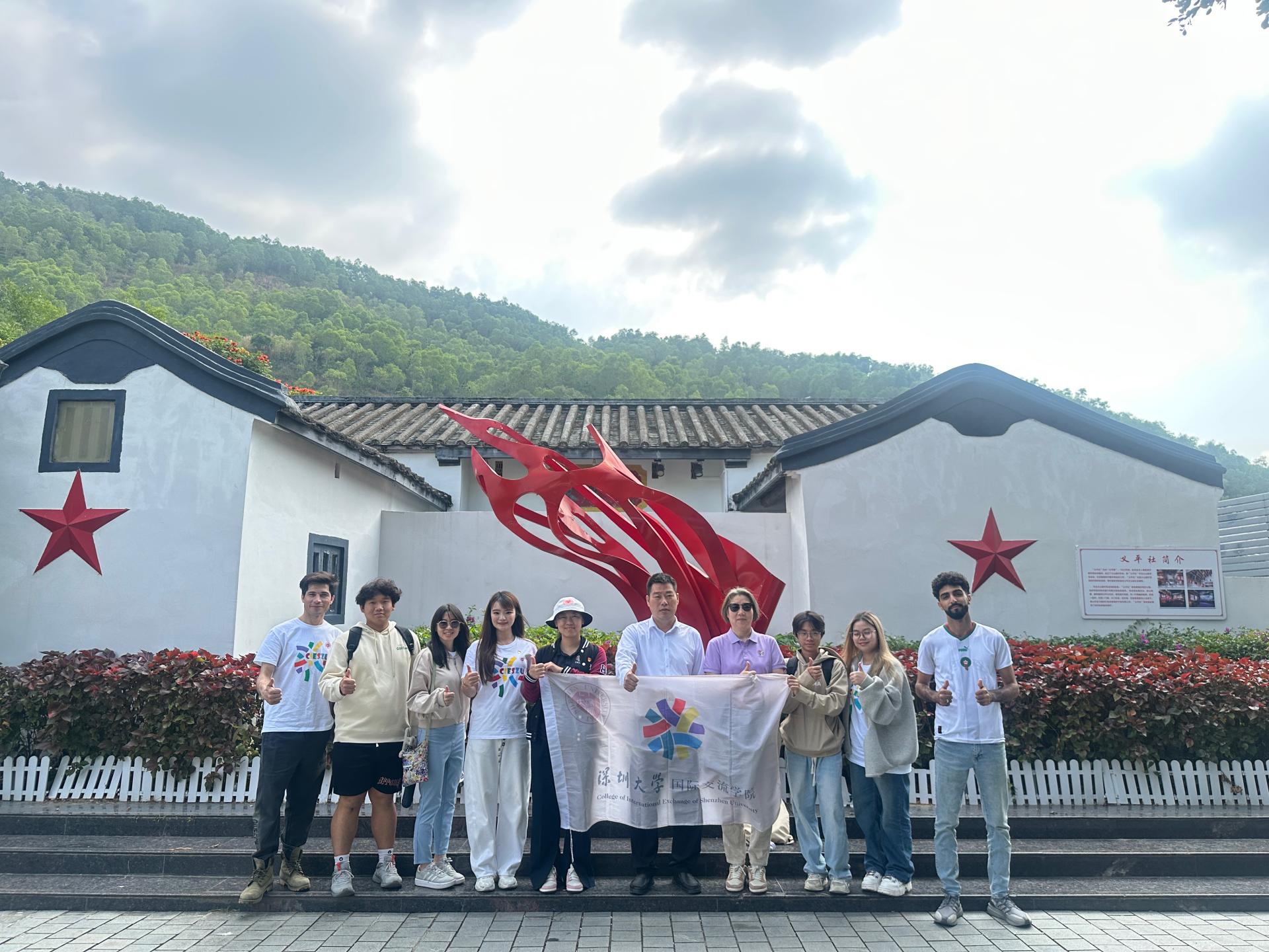 为落实省委、省政府及教育厅关于“双百行动”工作要求,推进结对共建工作。2024年12月5日,深圳大学国际交流学院副院长郑捷、邱欢老师、张倩婷老师和六位来自摩洛哥、越南、巴基斯坦、缅甸、泰国的国际学生,前往海丰县附城新山村及平东镇中心小学,体验红色海丰革命精神,开展文化交流体验活动。