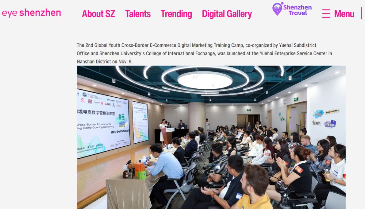 由深圳大学国际交流学院发起,粤海街道办共同主办,弧米科技、华语时代传媒、深圳跨境电商协会等单位协办的“粤品出海”全球青年跨境电商数字营销训练营,构建起了政府、高校、企业三方紧密合作的协同育人体系。自2023年首期成功举办以来,凭借其丰富的课程体系与国际化视野,已成为跨境电商教育领域的重要品牌项目。作为粤海街道国际化“益企行”系列活动、深圳大学双创周系列活动、知行中国系列活动、国际学生职业发展精品项目以及深圳大学“一带一路”国际学生双创基地的精品项目,该活动自2023年首期成功举办以来,得到了广泛的社会关注与参与。
